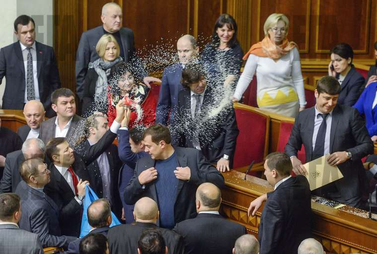 Депутати от украинската опозиция хвърлят елда и ориз върху новоизбрани народни избраници от управляващата Партия на регионите, докато те се заклеват в парламента в Киев. В Украйна елдата е символ на изборните измами. В страната продължава противостоянието между опозицията и президента Виктор Янукович заради провалената интеграция с ЕС.