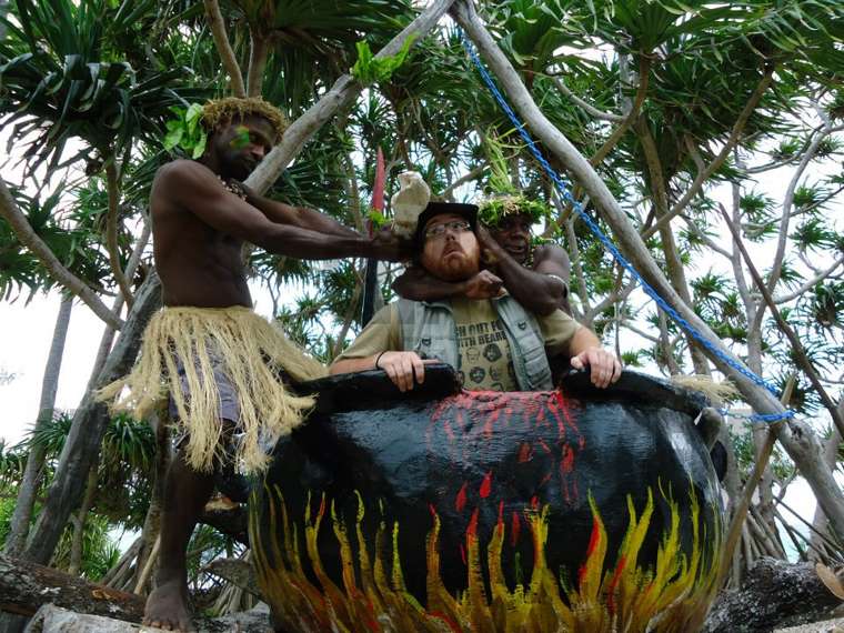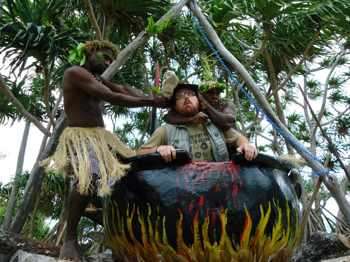 Двама млади туземци се наведоха, грабнаха го и го понесоха към казана. Вятърът донесе последните му думи: