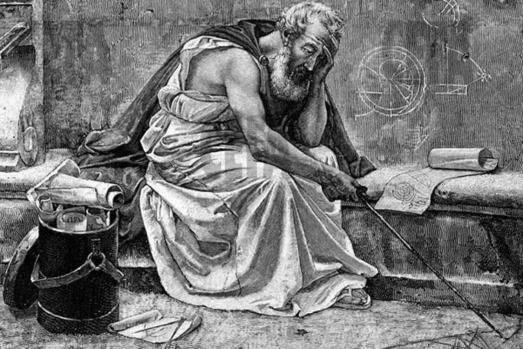 Архимед вдигнал поглед от покритата с восъчен слой табличка, на която той наистина чертаел нещо, и казал: