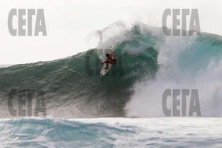 Кортни Калог сърфира по огромна вълна край Мауи (Хаваи) по време на 4-тия кръг от финалния етап на световното първенство по сърфинг за жени. Американката получи първата перфектна оценка - 10, от началото на шампионата, който трябва да завърши в неделя.