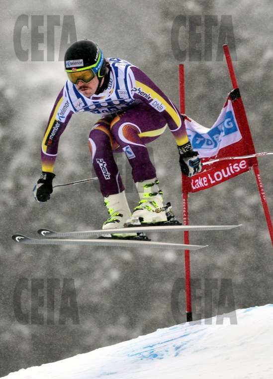 | Снимка: ЕПА/БГНЕС Кйетил Янсруд прелита над бабуна по време на първата тренировка за съботното спускане за Световната купа по ски-алпийски дисциплини в Лейк Луис (Кан). Норвежецът даде най-доброто време - 1:54,21 мин., следван от Мануел Осбърн-Паради (Кан) с 1:54,54 и Матиас Майер (Ав) с 1:54,92. Снощи бяха вторите тренировки. В Лейк Луис ще има и супергигантски слалом за мъже - в неделя. |