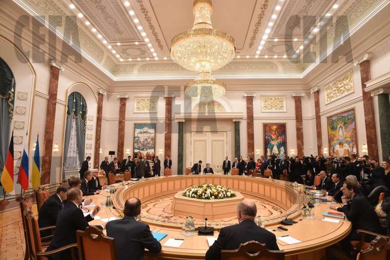 Лидерите на Украйна, Русия, Германия и Франция поеха ангажимент да спазват суверенитета и териториалната цялост на Украйна, се посочва в съвместна декларация на четиримата лидери, разпространена от Кремъл. В Минск бяха подписани два документа, съобщи още Владимир Путин. "Минската контактна група подписа документ, наречен "Комплекс от мерки за прилагане на Минските договорености", каза Путин. По думите му "вторият документ е без подписи, като това е изявление на президента на Франция, президента на Украйна, вашият покорен слуга и канцлера на ФРГ, че подкрепяме този процес". Лидерите на самопровъзгласилите се Донецка и Луганска народна република(ДНР и ЛНР) Александър Захарченко и Игор Плотницкий също подписаха предложения им от "нормандската четворка" документ в Минск. Те заявиха изненадващо, че са съгласни да останат в състава на Украйна.