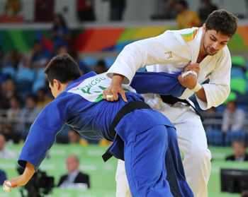 | Ивайло Иванов (вдясно) в акция срещу корееца Сеунг-Си Лий по време на 1/8-финалната схватка. Това се оказа последната победа на българина в олимпийския турнир. |