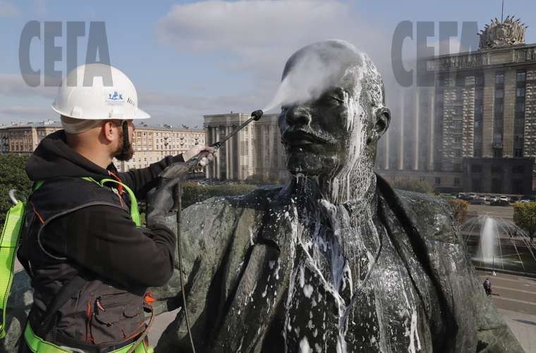 Руски общински служител чисти паметника на съветския лидер Владимир Ленин в Санкт Петербург по повод отбелязването на 100-годишнината от болшевишката революция през 1917 г. 7 ноември бе един от най-важните празници в Русия до 2004 г. От 1996 г. с указ на президента от Ден на Великата октомврийска социалистическа революция 7 ноември става Ден на съгласието и помирението.