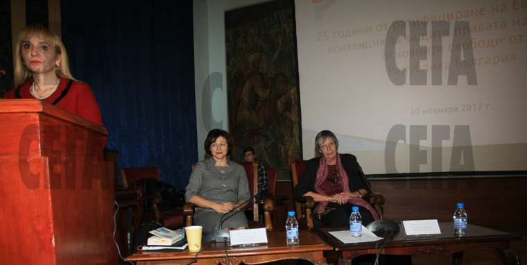 От началото на годината България е осъдена в Страсбург да плати обезщетения в размер на 799 595 евро. Данните бяха съобщени на конференция по повод 25 г. от ратифициране на Европейската конвенция за защита правата на човека и основните свободи. На преден план е бившата правосъдна министърка Диана Ковачева, която сега е заместничка на Манолова. Зад нея са Павлина Панова и Здравка Калайджиева, които са били съдии в Страсбург.