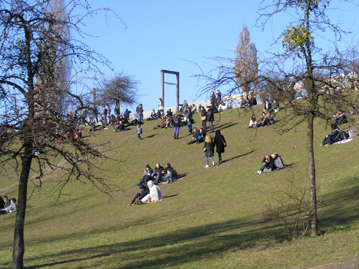 а къде е мауер? би ми било интересно да я видя или там каквото има останало. Вуду, намерих да ти покажа, какво е останало в този парк от Стената... от голямата - нищо, но от междинната: виж границата между синевата и зеленината |