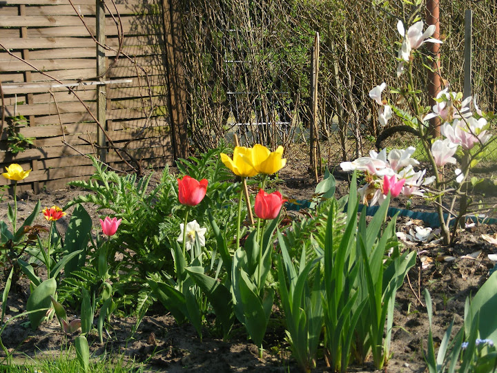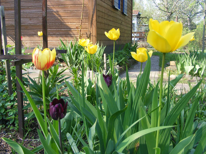 | Воистина воскресе ! Сибила, предусещах и очаквах божествената ти разходка на този най-светъл празник Всичко, което си показала, очарова... от красивото пъстро яйце до цъфналото дръвче. Откривам приятното настроение дори и по каменистия път до манастира... където се чувства най-силно новото събуждане на пролетта и Христовото възкресение!Спрях се да погледам и уникалното яйце, нарисувано от първородния ти син. Прекрасно и стилно е така оцветено, но за миг изгубих цветовете на дъгата в него и видях зачатие в майчина утроба. Опитай и ти, няма начин да не те впечатли... Разбрах, че обичаш лалетата и тези преливащи се, фотографирах за тебе. От двора на дома на роднинска фамилия са. И съвсем свежи, от празничната неделя. От тогава са и другите моменти, които ще покажа. Мястото е извън Берлин, по пътя за границата с Полша. |