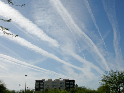 Различно е, душа... Погледни в момента на запад. единият е с "дълга"кондензия, т.е. държи се много време., другият е с "къса"... Добре де, кажи какви 4 самолета са летели и накъде са отивали - следите изтъняваха и се губеха някъде над Витоша. |