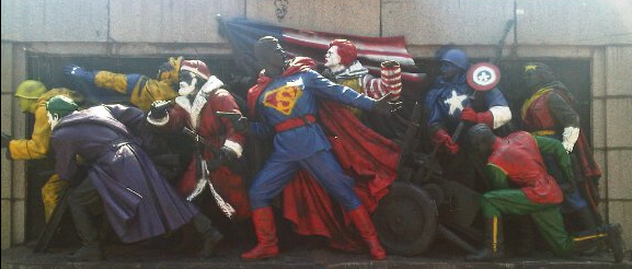| Супермен, Върколака, Капитан Америка, Джокера, Дядо Коледа, Робин, Роналд МакДоналд, Маската, Уондъруомън поради фундаменталното значение в историята на столицата помествам тук изключителната попарт инсталация ![]() |