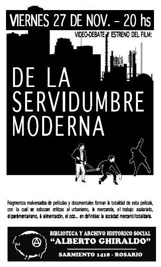 De la servidumbre moderna / Съвременното Робство (2009) Натисни тук Времетраене: 52 min. Език: Испански Държава: Колумбия Директор: Жан Франсоа Бриент година: 2009 Формат: Avi Без запазени права. Това е един документален филм на Жан Франсоа Биент и Виктор Леон Фуентес.Направен върху едноимената книга "De la servidumbre moderna". нигата и филмъте разпостраняват абсолютно безплатно.Текста е писан в Ямайка през октомври 2007 , а филмът е завършен в Колумбия през май 2009 г. Книгата може да бъде свалена от тук: Leer el libro en formato HTML desde el sitio: http://www.delaservitudemoderne.org/texto.html Descargar el libro en formato PDF desde el sitio: http://www.delaservitudemoderne.org/Documents/delaservidumbremoderna.pdf Официална страница на автора: Fuente: http://www.delaservitudemoderne.org Филма и субтитрите можете да си свалите от тук: http://****set.net/torrent/5/22/133666/De%20la%20servidumbre%20moderna |