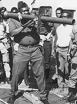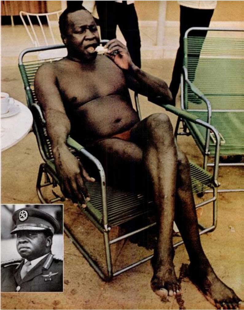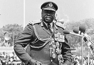 Иди Амин носи титлите: Негово превъзходителство пожизненият президент фелдмаршал Хаджи доктор Иди Амин Дада, кавалер на "Кръста Виктория", ордена "За заслуги", "Военен кръст", властелин на всички земни животни и всички морски риби, последният крал на Шотландия, победител на Британската империя в цяла Африка и Уганда, професор по география, ректор на университета "Макерере". | |
