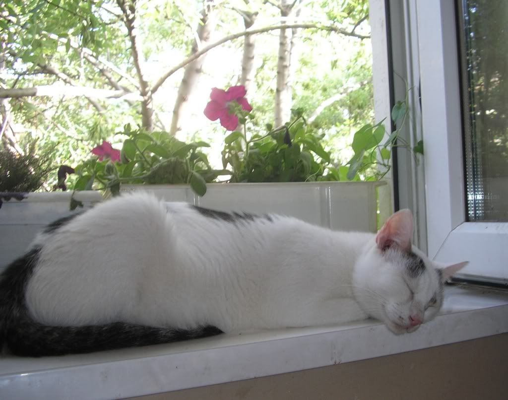 | а пък моят Hercule. известен с nom du plume "Белия чорап" се е свил на креслото, дреме и хич не му пука, че идва края на света |