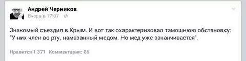 Каждый житель РФ должен сделать три вещи: 1.Постоять 30 часовую очередь на переправе. 2.Отдать пенсию олигархам. 3.Потерять ногу в Украине. Если ты не сделал ничего из перечисленного тогда не смей называть себя русским! |