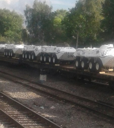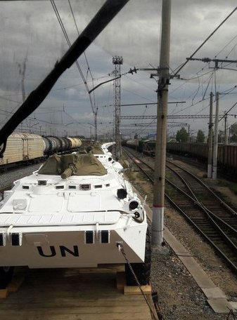 | Givi@MikhailTolstyk Yaroslavl region residents have noticed APC's painted in UN colors moving towards the Ukrainian border with #Donbas |