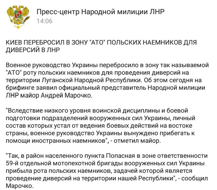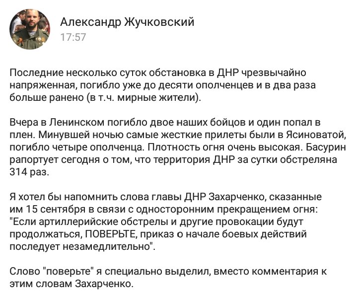 | Poroshenko’s statement means cancellation of Minsk, new spiral of conflict — DPR head At the meeting with heads of ministries, departments and local administrations, Zakharchenko said: "Today we held drills connected with two things. Firstly, it is the acute escalation on the contact line. Secondly, it is the statement made by Pyotr Alekseyevich Poroshenko, in which he completely cancelled the Minsk Agreements and basically opened the new spiral of military actions." Poroshenko said earlier that Kiev refuses to implement the political part of the Minsk Agreements until the issue of ensuring security in the region is resolved, despite the fact that the sequence of steps in the process is fixed in the roadmap. More: http://tass.com/world/9067222 |