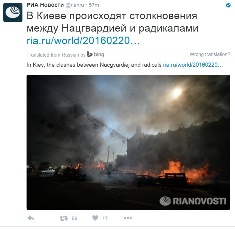 | Тормозчияне, би ли показал оригинална страница на английски на РИА "Новости"? Жокер: няма да можеш, защото английският вариант на РИА "Новости" носи друго име. Та кой се занимава с фейкове, молим? Жокер: партньорите! ![]() |