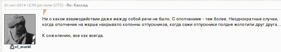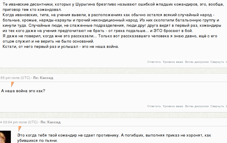 гиркинистите дават доста нелицеприятни оценки за руската армия: излиза, че от първата чеченска насам рашките нищо ново не са научили. | |