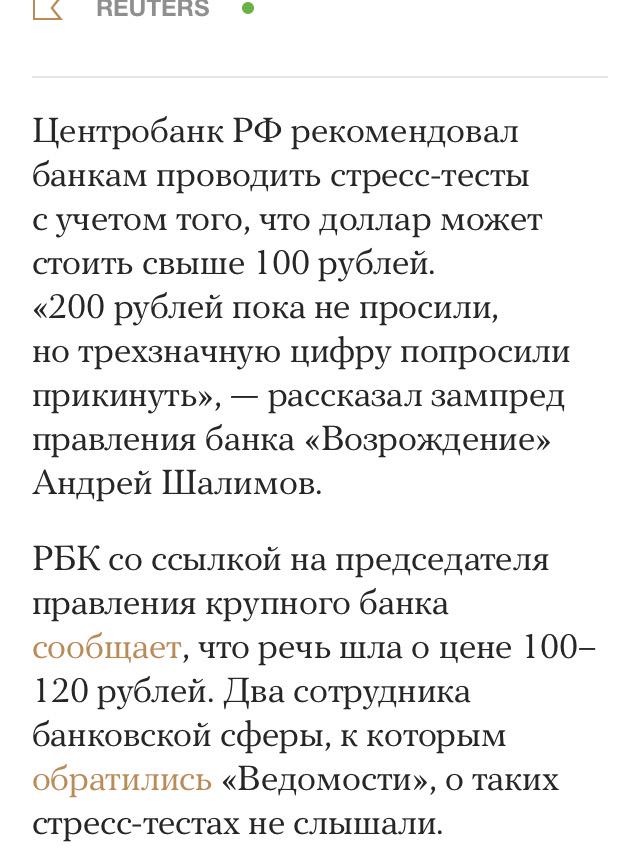 | Рубль идет ко дну Нефть топит российскую валюту Доллар уже стоит дороже 67,5, евро - 75,3 рубля. Бессмысленно вспоминать, когда такое уже было, нужно честно признать, что ситуация все ближе к откровенно панической, какой она была на российском валютном рынке на рубеже 2014 - 2015 годов. И это еще только начало. http://www.utro.ru/articles/2015/08/20/1252923.shtml |