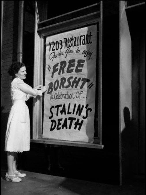 | Бързаш. 5 марта в 21 час 50 минут Сталин умер /официалната версия/ Погребението на Сталин е на 9 март. Тогава е световния многомилионен митинг прощаване с "бащицата на всички народи" Тук у нас има живи свидетели /предимно деца тогава/ участвали в шествието за засвиделстване на скръбта, че след тази смърт са /сме/ останали сираци. Деца заедно с родители си, които трябваше да засведелстват прекомерната си скръб от тази кончина. В противен случай щяха да бъдат обявени за "врагове на народа" Изключваме онези семейни групи, които заради властовите си постове наистина скърбяха поради объркаността им как ще стане с тях след това.... Но не дълго след тази дата те бързо се преорентираха и след три години бяха сред най горещите активисти за събарянето на паметниците на Бащицата и преименуването на градове,села училища ,та даже и върхове.... Скоро четох,че Варна няма официален документ за връщане на името си след преименуването и на град Сталин. И днес тук някой още се гордеят с това име на града им. |