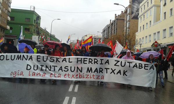 | http://revolution-news.com/marches-for-bread-work-homes-and-dignity-converge-on-madrid-end-wpolice-repression/ Маршове за "Хляб, работа, жилища и достойнство" в Мадрид. Жестоко подтискани от властта 21 март 2015 г. ![]() | |