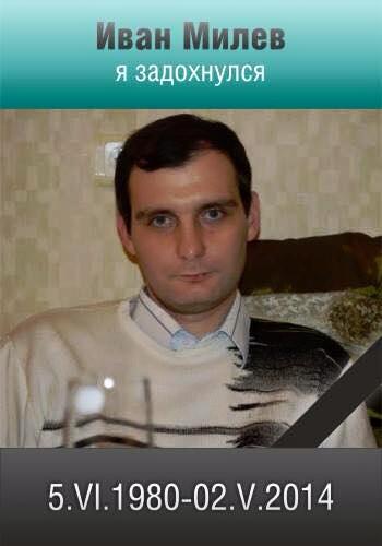 | Името ми се стори подозрително, проверих и за съжаление, се оказа истина. Между загиналите има и българин. Наше момче, бесарабче. Сега имаме причина да мразим гадовете още повече Информация от Уикипедия за човека: Натисни тук Иван Иванов Милев (на руски: Милев, Иван Иванович, роден на 5 юни 1980 г. в Одеса, починал на 2 май 2014 г. там) е бесарабски българин от Одеса, деец на българската общност в Бесарабия, инженер, загинал на 33 години, изгорен жив при подавянето на протестите срещу антиконституционния преврат в Киев на пл. „Куликово поле“ в Одеса на 2 май 2014 г. Биография Иван Милев е роден на 5 юни 1980 г. в Одеса в семейство на архитект и учителка, средно образование завършва в одеското 80-то училище през 2001 г., следва и се дипломира в Одеския политехнически институт. Преди да бъде убит, е инженер водещ конструктор на Одеския авиоремонтен завод и разработва специални възли и детайли за лекия самолет Y1 „Делфин“. Иван Милев е активен деец на Асоциацията на българите в Украйна, представляваща няколкостотинхилядната българска общност там. Той става председател на Запорожкото градско българско дружество „Св. Св. Кирил и Методий“, гр. Запорожие, където съдейства за поставяне на паметните знаци при Вознесенския археологически комплекс, за който има предположения, че може да включва гроба на българския владетел Аспарух. В 2006 г. получава наградата „Човек на годината“ от Асоциацията за: „За многогодишна активна родолюбива дейност, за голям принос във възраждането и развитието на българските традиции и обичаи и за популяризиране на българския фолклор в Запорожка област.“ По свидетелството на бесарабския българин Георгий Шишман пред БНР Иван Милев като виден деятел на българското движение е един от водачите на местните българи в гражданските протести на пл. „Куликово поле" в Одеса. Свързан е с бесарабския град Комрат, в медиите е обявено че има и гражданство на Молдова, част от която е автономната българо-гагаузка република Гагаузия, в чийто столичен Комратски държавен университет се преподава и българска филология. След трагичната кончина на Иван Милев изпълкомът на Гагаузката република в Молдова отпуска 10 000 леи помощ на семейството за погребението му и лично председателят ѝ Михаил Формузал изказва дълбоки съболезнования на близките му. Убийство При погрома над мирно протестиращите одески граждани от отряди на силите, завзели властта в Киев, станал на 2 май вечерта, 33-годишният Иван Милев е изгорен жив заедно с десетки други протестиращи в намиращия се на площада Дом на профсъюзите в Одеса, където те опитват да се спасят от нападателите. Изгорелият му напълно труп е открит на главното стълбище между третия и четвъртия етаж на сградата. Идентифициран е чрез ДНК проба. Обявен е под №40 в окончателния списък на загиналите от официално обявените 48 жертви, но депутатът от Одеския областен съвет Вадим Савенко заявява, че киевските власти прикриват истинските данни за броя на мъртвите, защото той има доказателства за загинали 116 души. Осъдени от нападателите за неговото и десетките други станали там убийства няма, нито за нахлуването и подпалването тогава на Българския културен център в Одеса. Към троловете, отровно леещи фекалии в тази тема - вие си знаете... |