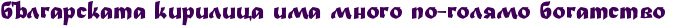 | Изсмукана от пръстите си тъпотия на комплексари решили да прилапат парички за сметка на наивни данъкоплатци. Така наречения "българска кирилица" няма нищо общо с България , Белорусия или Русия или Малорусия. Така пишат малките деца в началните класове докато още не се е формирал почерка им. Неудобно, трудно за четене близко до ръкописният стил. Тъпо и прсто. Четенето по така нар "бъгарска кирилица" чисто и просто си е мъка и тормоз за нормален, мислещ, интелигентен човек. |