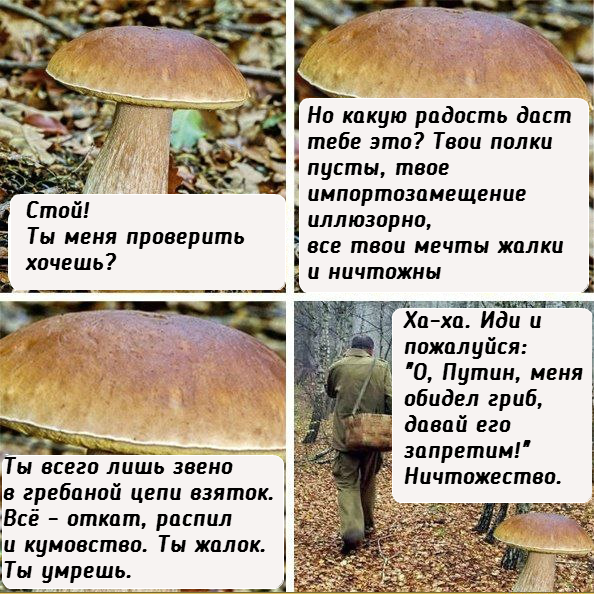 817 постинга на тема кашкавалът в Русия .... Първо, пармезанът изобщо не е кашкавал. Второ, темата изобщо не е посветена на пармезана, той е само символ на определена руска новоимперска политика на самоизолация с претенции за самодостатъчност. До голяма степен темата е хроника на тази анахронична чучхеистка политика с всичките ѝ трагикомични напъни, перипетии и последици. Ето защо темата ще бъде изчерпана едва когато се видят крайните резултати от тъй очертаната политика. |
