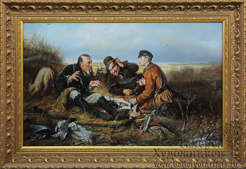 | „Охотники на привале“ на Василий Перов. Единият лъже,този в средата не му вярва,третият здраво е „лапнал“. Натисни тук | |