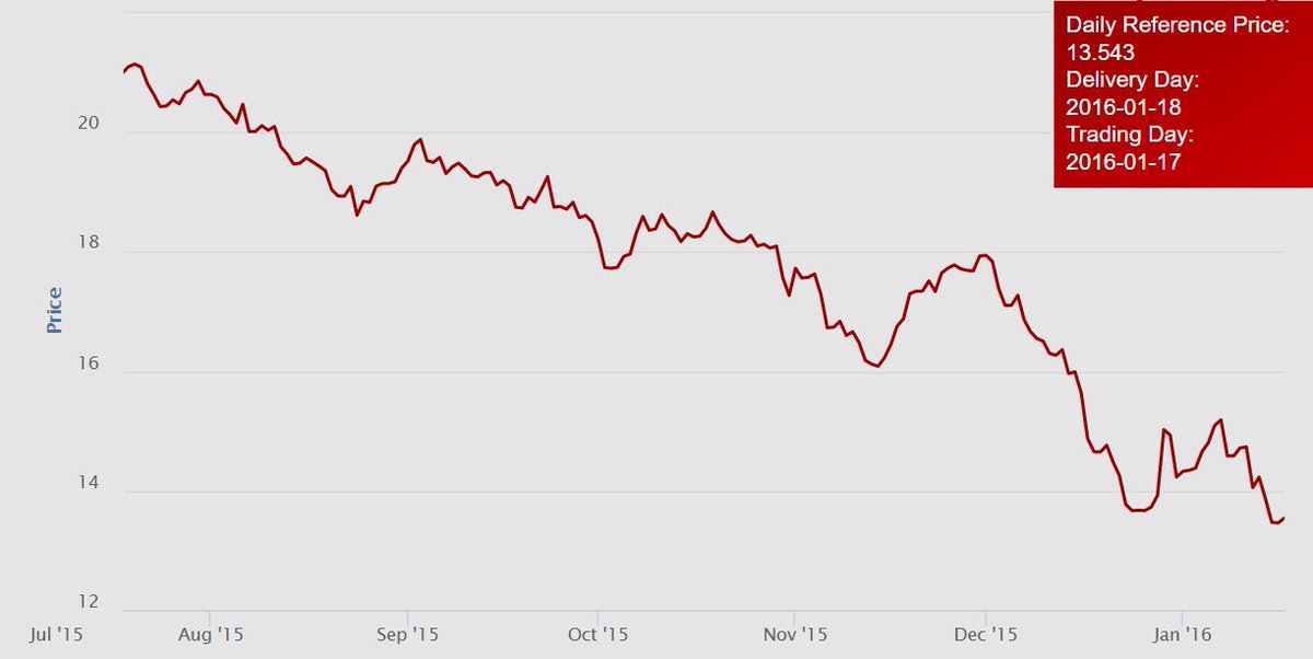 2016-01-18 Natural Gas Daily Reference Price: DUTCH TTF GAS SPOT (Netherlands) - ? 13.543 EUR/MWh ($151/1000 м³![]() |