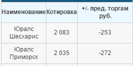 | Котировки Urals Порт Шесхарис (Новороссийск): 27.5 USD за 1 баррель Порт Приморск (СПб): 26.5 USD за 1 баррель ![]() |