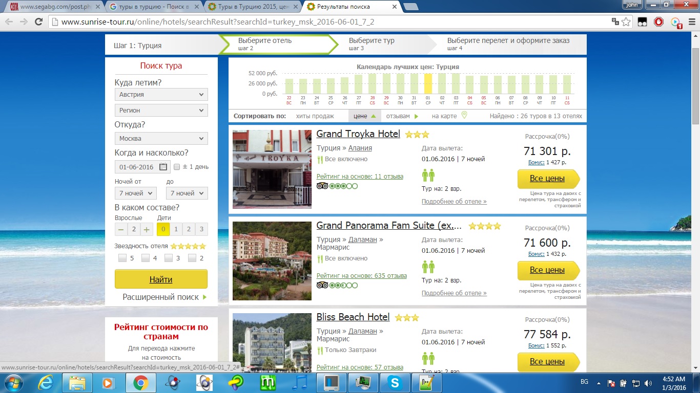 moni 03 Яну 2016 04:58М ...но днес, 3.1.2016 г., направих справка в електронна търсачка и ми излязоха "горещи" почивки за двама за 7 нощувки (9 дни) в Анталияна цена под 1000 зелени гущера, т.е. под 500 на ... Ама това сигурно ли е??? Щото и аз проверявах, проверявах ... а приказката тръгна от другаде - от потъпкването на правата и свободите в Русия от Ботоксния Жужо ... ето как .. : Натисни тук бонго-бонго 21 Дек 2015 17:14 Само един много пресен пример, на руските туроператори им беше ЗАБРАНЕНО да организират пътувания в Турция. та съм в недоумение- не вярвам Бонго да лъже тъпо - като малоумен соросоид .. най-вероятно ще си докаже мнението съвсем скоро!А ние-междувременно ще видим как е положението с други страни и народи .. | |