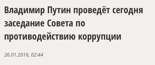 ...Россия вряд ли сегодня-завтра добьется ярких побед в борьбе с коррупцией, заявил президент России Владимир Путин на заседании президентского антикоррупционного совета, передает РИА «Новости».