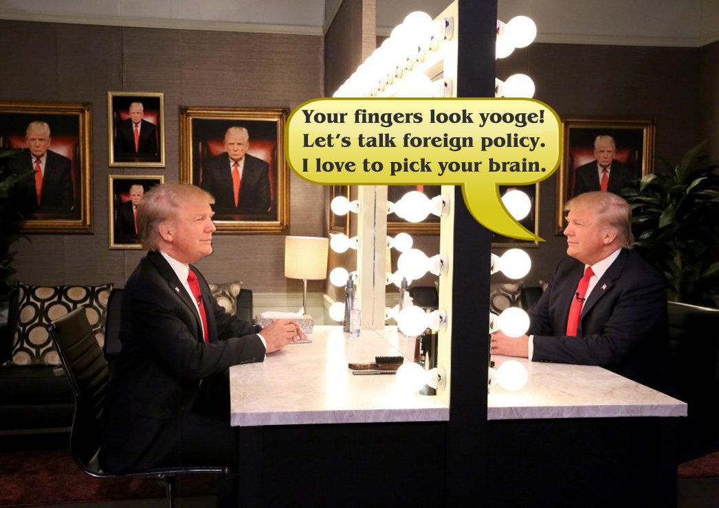 Тръмп е ерудиран, симпатичен, артистичен, алегоричен, тактичен, богат, умен, обича жените (стрейт) /доскоро правеше и бебета/, умее да спори на най-високо ниво, аристократ от класа, разбира как да изхваща големите пари, защото е стигал до дъното, за да се изкачи отново на върха, вижда цялата картина, а не микроскопичните елементи в обществото, ценител на червения мрамор (брекша) - Тръмп Плаза, например и само хубави неща. Ех, как не обичам да вдигам палчета по комунистически, ама в случая няма как! |
