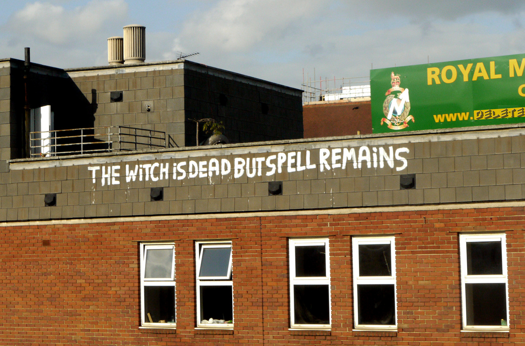 Този израз: "The witch is dead, but the spell remains" (Вещицата е мъртва, но магията остава) бива изрисуван на най-различни места в Англия след смъртта на Тачър, която далеч не всички наричат "Желязната лейди". Everybody will be dead at some point in their lives. А хейтърите, написали горното за Тачър вероятно никой с нищо няма да запомни. |