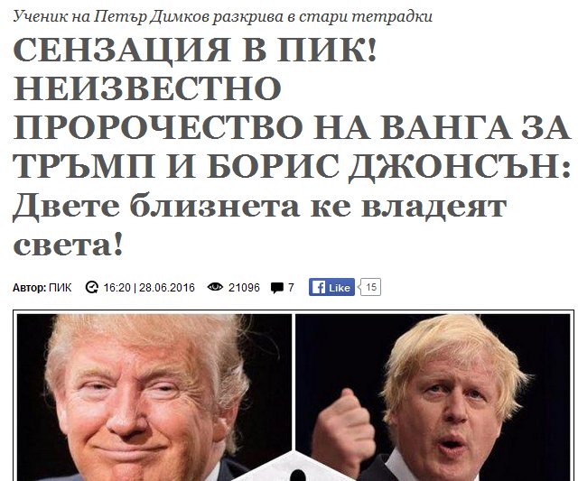 реки, лейди Макбет си свърши работата - снощи Гоув заби нож в гърба на Борис. И изглежда, че министър-председателят в крайна сметка ще е годзилата Териза. натам вървят нещата. Johnson pulls out of Tory leadership contest That is the agenda for the next prime minister of this country. Well, I must tell you, my friends, you who have waited faithfully for the punchline of this speech, that having consulted colleagues and in view of the circumstances in parliament, I have concluded that person cannot be me. My role will be to give every possible support to the next Conservative administration to make sure that we properly fulfil the mandate of the people that was delivered at the referendum and to champion the agenda that I believe in, to stick up for the forgotten people of this country. And, if we do so, if we invest in our children and improve their life chances, if we continue to fuel the engines of social mobility, if we build on the great reforming legacy of David Cameron, if we invest in our infrastructure and we follow a sensible, one nation Conservative approach that is simultaneously tax-cutting and pro-enterprise, then I believe that this country can win and be better and more wonderful and, yes, greater than ever before. последните два абзаца са първокласно тролене. | |