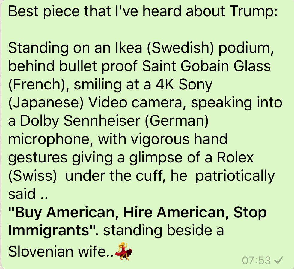 Д-р Тормозчиян 31 Яну 2017 01:31 Тва е направо гениално! Тръмп си купил подиум от ИКЕА, вместо от американските производители на подиуми. Спипаха го по бели гащи ![]() |