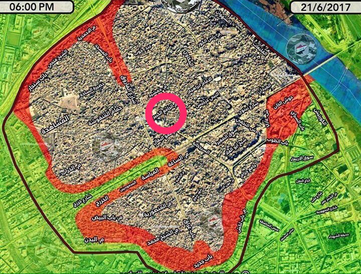 | Най-сетне! Касапницата в Мосул, май е на привършване. Коалицията пробива коридори към проклетата джамия ал-Нури, с което разкъсва и отбраната на главорезите. Твърди се, че коалиционните сили вече са на около 50-на метра от нея: За косвено потвърждения на горните карти би могъл да послужи и ъгълът под който стрелят минохвъргачките на коалицията в следния видео-клип /от 0,5 мин. нататък/: Натисни тук От друга страна, все по-настойчиви стават слуховете, че главорезите най-сетне са я взривили тази джамия: Натисни тук . Предполага се, че в момента тя изглежда ето тъй: И туй в последните дни от рамадана... направо чудничко бих казал... във връзка с бъдещите пропагандни усилия на халифата на главорезите /предполагам, те ще твърдят обаче, че коалиционните сили са я думнали... /... | |