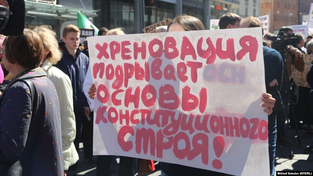 В Москве проходит очередной митинг против реновации. Акция согласована с властями, ее организаторами выступили партии ПАРНАС и "Яблоко". Заявленное число участников – до 10 тысяч. Перед началом мероприятия полицейские сняли с трибуны для выступлений баннер с надписью "Собянинская реновация под снос". |