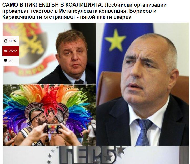САМО В ПИК! Елитът срещу Истанбулската конвенция Предложението на Министерски съвет за ратифициране на Истанбулската конвенция разбуни и елита на България и куп интелектуалци вече открито се обявиха срещу приемането й. Пред агенция ПИК в последната седмица срещу нея се изказаха редица политици и анализатори - проф. Огнян Герджиков, депутатът от ГЕРБ Георги Марков, сексологът Румен Бостанджиев, патриотът доц. Милен Михов, народният представител от БСП Таско Ерменков, евродепутатът Ангел Джамбазки, социалистът и столичен общинар Калоян Паргов, вицепремиерът Валери Симеонов, програмният директор на БНТ Емил Кошлуков и много други. С такъв елит - толкова. |