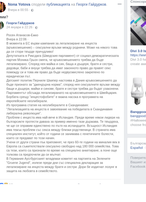 | И малко успокоителни новини Не е само България Проблемът, впрочем, не е само български. Току-що излезе изследване на фондация „Жан Жорес" за вярата в конспиративни теории при една по-стара демокрация, каквато е тази във Франция. Резултатите потресоха изследователите. И допускам, че ако направим подобно изследване в България, ще се потресем и ние. 55% от французите вярват, че Министерството на здравеопазването, в съучастие с фармакологичните компании, крие от гражданите истината за вредните последствия от ваксините. За 32% СПИН-ът е биологично оръжие, изплъзнало се от американските лаборатории. Една четвърт смятат, че тайни общества управляват планетата. Също толкова са убедени, че ни изпращат бежанците, за да бъде подменено населението на Европа. 20% вярват, че следите от самолетите са химикали, с които ни пръскат, за да намалят световното население. 18% са креационисти - тоест, отричат еволюцията и вярват, че Бог бил създал живите същества преди около 10 000 години. До 16% са намалели последователите на конспиративната теория, че американците не са стъпвали на Луната. И накрая - специалната награда за 9-те процента французи, които вярват, че Земята е плоска и че учените, които твърдят друго, ни лъжат и мамят. Натисни тук |